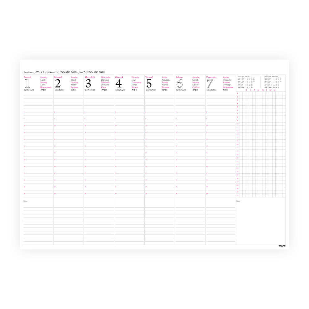 Settimana in verticale su una pagina, con note laterali