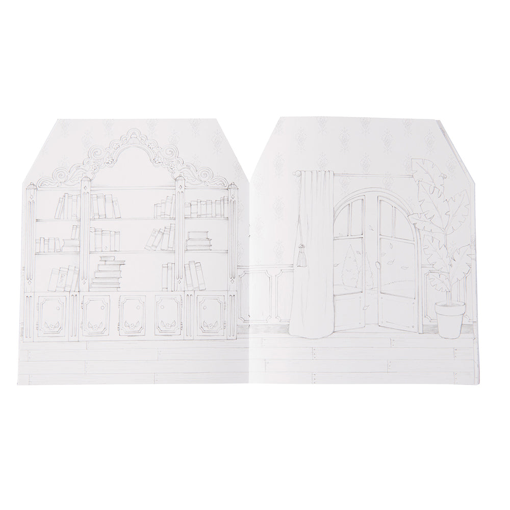Gli illustrazioni in stile "matita" mostrano varie stanze dettagliate della collezione Il Etait une Fois.