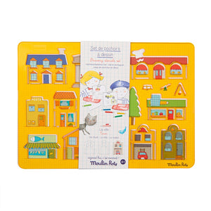 Un set di due normografi/stencil da disegno per riprodurre facilmente tutti gli elementi essenziali della città